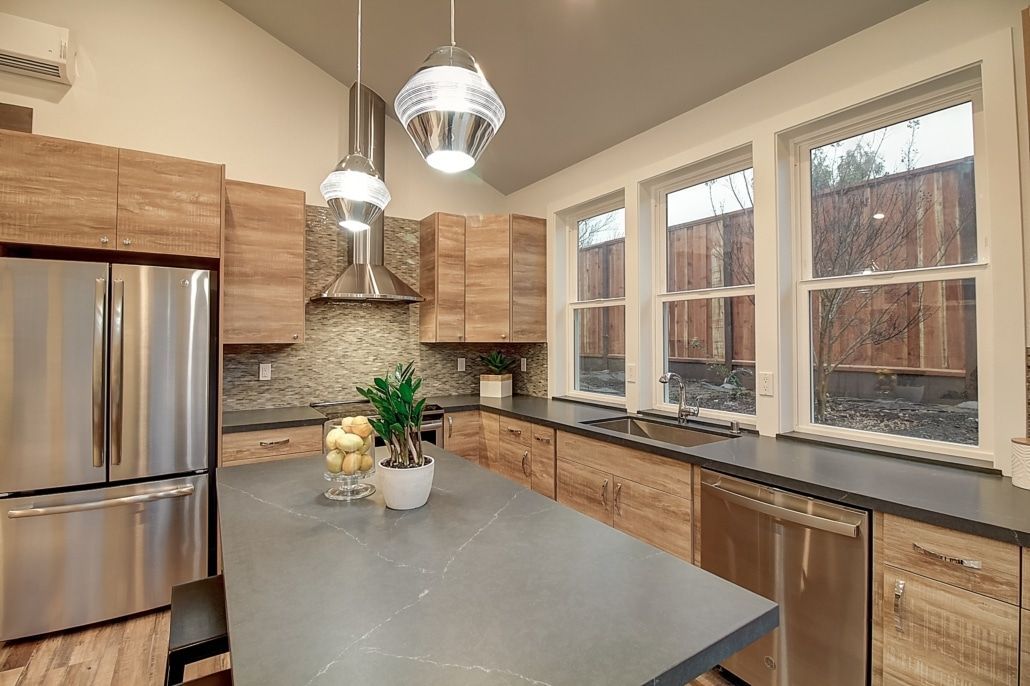To accomplish this, the design team at Acton ADU curated a sleek, yet rustic design that provided loads of counter space and storage, and tailored an area originally designated as a breakfast nook, into a wonderful office space. Here are some highlights.